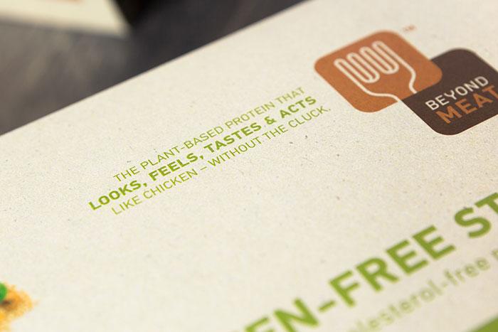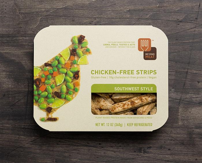 這個冷凍食品包裝設計形象許,除了展示凍肉的完美鮮亮的外觀之外,是完全可以取代動物蛋白的植物蛋白產品,這是該公司出現在貨架上的第一個產品。