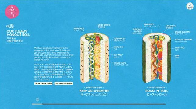 位于新加坡的日式快餐店Maki-San,是新加坡第一家可以完全定制的壽司店。除了在個人口味上推出獨特的方式讓顧客來選擇、制作專屬于顧客的獨一無二手卷、壽司之外,大家還可以依據喜好,為自己搭配的手卷命名!而且Maki-San的設計保有許多日式的可愛元素,同時也納入色彩強烈的歐系風格,看看這可愛的包裝設計,是不是令人食欲大開呢?