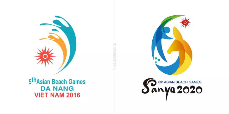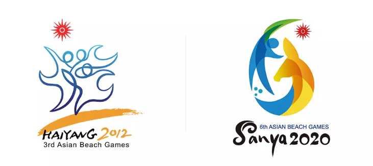 上圖左為2010年第3屆亞洲沙灘運動會會徽。我個人而言,我更喜歡2012版本的。流暢的線條勾勒出三個動感的人物聯手共舞,同享沙灘運動帶來的無窮快樂。當然,只有主圖形中隱藏的漢字「海」,這個解釋就有點牽強了。