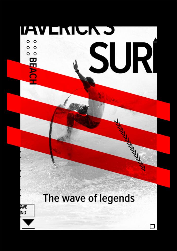 利用線條基本上是最常見的構(gòu)圖方法了,垂直線引人向上看,因而使人產(chǎn)生高度感;水平線則引人向兩邊看,因而使人產(chǎn)生廣度感。由此可見,垂直線能強(qiáng)調(diào)出主題元素的高度,水平線則會強(qiáng)調(diào)出它的廣度。此外,在觀看任何一幅設(shè)計作品時,我們常會自動地構(gòu)成一根中軸線,即直接通過畫面中心的水平線和垂直線。