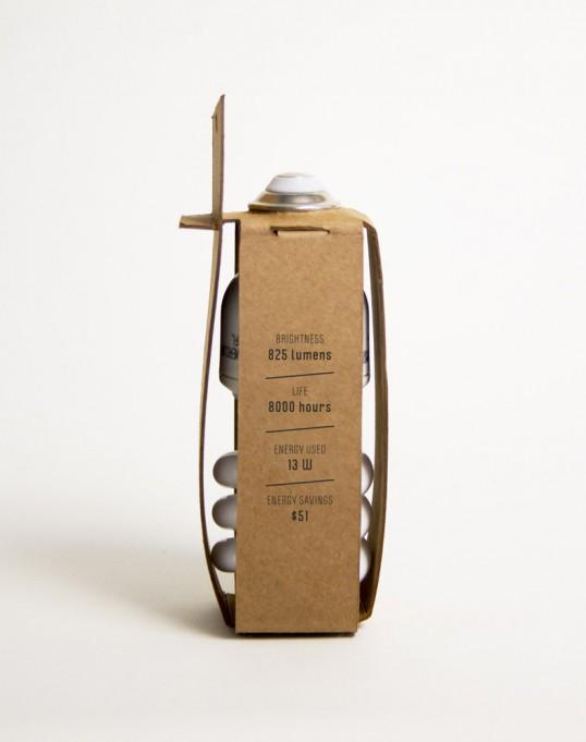 這是學生Michelle Wang為GE節能燈設計的一款包裝,它使用回收的刨花板(足夠硬~~)為包裝材料,不使用膠水并盡可能少的使用油墨。Michelle Wang 的基本想法就是設計一款真正的環保包裝。