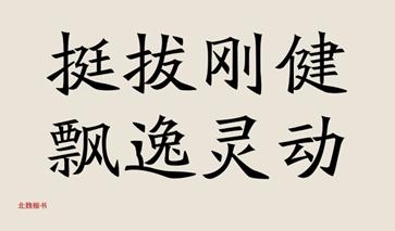 絕大多數(shù)字體并非是由單純的直線或者單純的曲線構(gòu)成,橫豎為直,撇捺為曲,有曲有直才顯得剛?cè)岵辛α浚灿袕椥浴1热绫蔽嚎瑫鸸P處與轉(zhuǎn)折處皆如削金斷玉,干脆利落,整個字體也就顯得挺拔剛健、英氣勃勃,在撇與捺處又有優(yōu)美的曲線,多一分圓潤,也就多一分飄逸靈動。
