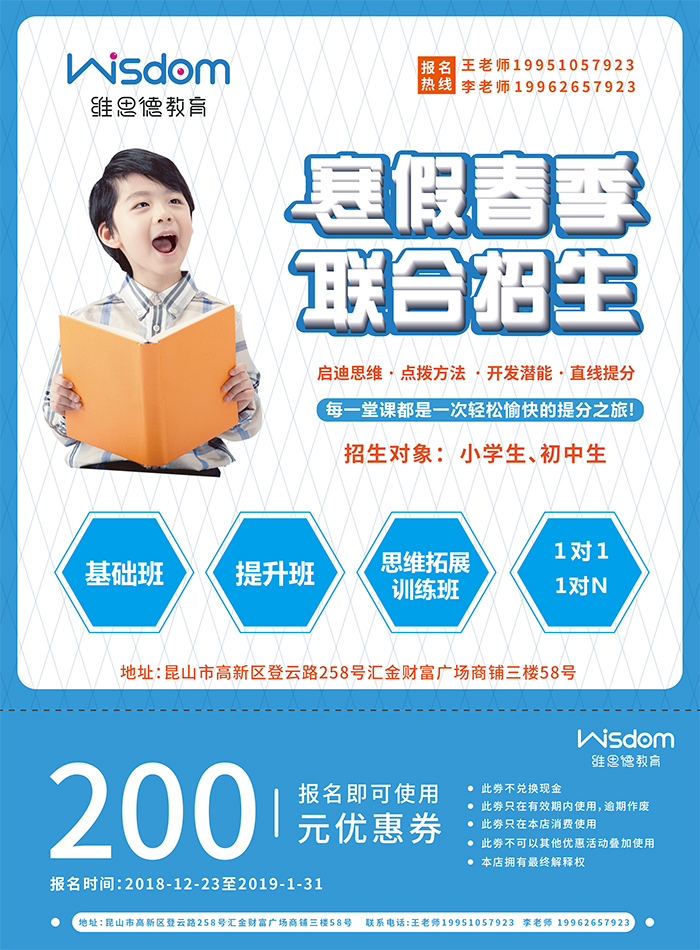 品牌介紹: 惟達教育自2007年創辦以來,專注于中小學課外輔導教育和興趣類的開發,教學質量和升學率在同類機構中名列前茅。公司擁有一批具有多年豐富教學經驗、敬業睿智的優秀教師,他們以“一切為了孩子,為了孩子的一切”為座右銘不斷深研課程,提高教學質量,完善教學服務。專職老師上課經驗豐富,課堂形式多樣,授課生動有趣,深諳學生心理,因材施教,深受學生們的喜愛!