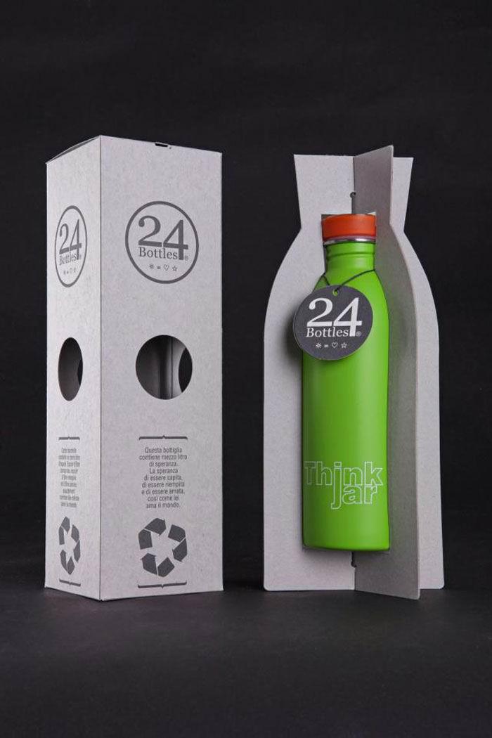 24bottles是一種通過打破征收塑料瓶回爐重造才能正式啟用飲料瓶的行業壁壘而創作的包裝形式,旨在利用全球網絡塑造一種可以用來代替任何品牌專用包裝使用器皿的設計形式。 24bottles的醒目起源于北歐國家的Anglo-Saxon地區,在那里每一個人都隨身攜帶一個塑料片用來解決生活或者工作中飲用水的灌裝攜帶問題,這些瓶子的制作材料集中在金屬瓶,硬塑料和玻璃,都是可以重復使用的環保材料。