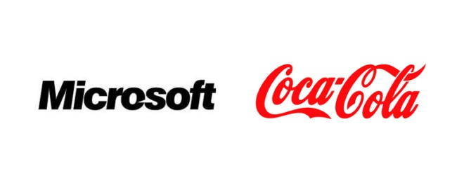 微軟:沉重的顏色,要傳達給用戶的是沉穩/深度/專業嚴謹等信息 可口可樂:鮮亮的色彩搭配活躍飄逸的字體,年輕/活力的感覺躍然紙上