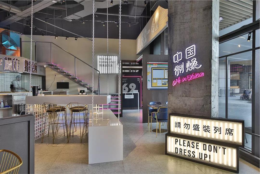壞大叔擼串會所這套VI設計,整體風格偏潮酷系列,體現的是當下年輕人不拘一格、率性而為的性格和生活態度。品牌命名上以壞大叔為店名,跟整個店打造的嘻哈系列相吻合,也和市面上大眾化的串串店拉開了差異化。所以壞大叔這三個字的字體設計上字形的設計打破比較規整的形式,“壞”字的左半部分采用連筆的形式,且“叔”的筆畫上融入三角以及斜切的筆畫去設計,細節上非常耐看。品牌體現的使命是“做自己,be real”。而除此之外,在做品牌文化輸出的時候,將不羈、倔強、個性、國際等品牌調性,通過人物以及受眾人群超酷的青年人去表現出來。店面整體設計的元素以工業風為主,巧妙應用個性的文案以及水泥、鋼管、鐵鏈等元素,讓整個體現了一種不羈的性格標簽和屬性。而且墻面的設計非常有意思,將百事可樂和可口可樂的罐子布滿整張墻,且藍色的餐椅和墻上百事可樂瓶身的顏色互相呼應增加了整體空間的層次感。除此之外整個空間的線條感非常流暢,用燈帶在屋頂圍城一個交叉的空間,即加強了空間的亮度,又是一個拍照打卡的好去處。空間還應用到了網格的元素,網格勾纏住圓形燈管,將它固定在中間,然后向四面散開,非常具有空間裝置的視覺效果,感覺在這里拍照真的酷到沒朋友!