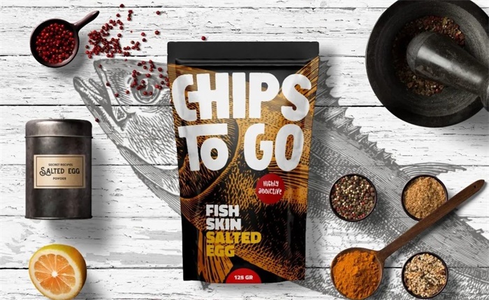 以下這款是一家國外休閑零食品牌形象設計,該品牌致力于開發日常海鮮零食。目前公司新開發出一款咸蛋口味的海鮮小吃。為這個新口味創建品牌標志,以將獨特的品牌快餐小吃推向市場。