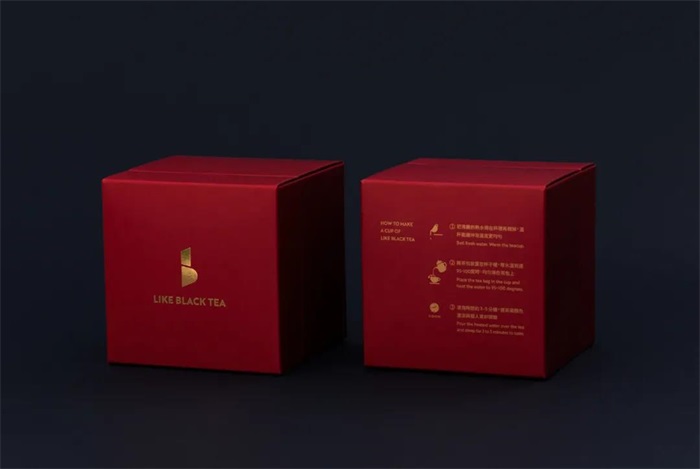 延續品牌強調質感、經典、沈穩、內斂、但又不失溫度的視覺調性,以打造時尚精品的概念形塑品牌,將商標用俐落的幾何圖形構成代表black tea的b,搭配簡約的無襯線文字,讓品牌顯得大器。形象的建構呈現在許多細節上,從門外金屬的招牌、墻壁上的文案、室內的精致布置,仿佛置身在高級飯店的飲料吧,體驗高貴不貴的紅茶文化。包裝設計則維持一致簡約的調性,以品牌內斂的識別色-勃根地紅為基底,搭配印金及燙金加工來烘托品牌質感與專業度,并以水彩渲染的效果帶出奶蓋飲品漸變的意象及茶湯風味的層次表現。