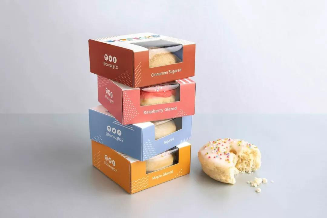 Jackdaw公司設(shè)計(jì)了三種不同的盒子尺寸:小的(單個(gè)甜甜圈)、中號(hào)的(半打)和大的(一打),還有一種無縫圖案的防油紙,緊貼在盒子里。此外,該公司還設(shè)計(jì)了一款高級(jí)紙袋,可以舒適地裝下甜甜圈的包裝盒,并確保甜甜圈是在剛出爐的情況下送出的。新的身份和包裝吸引了廣泛的觀眾,并推動(dòng)甜甜圈的獨(dú)特和令人興奮的味道組合。