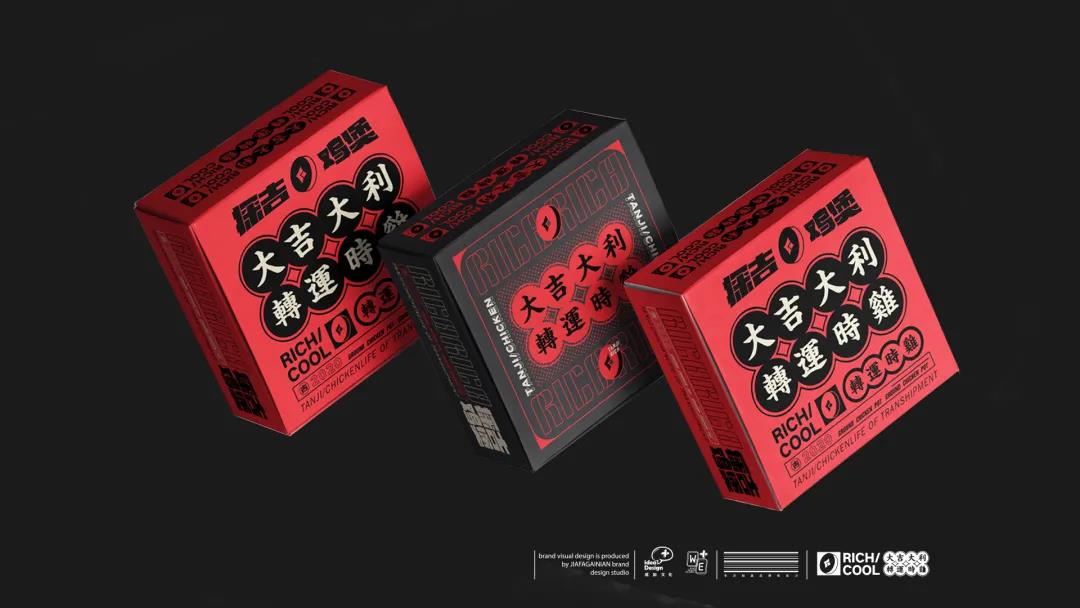 品牌的物料設計中,通過“大吉大利“”運轉時雞“”暴富”等詞語,將這些美好愿景傳遞給消費者。