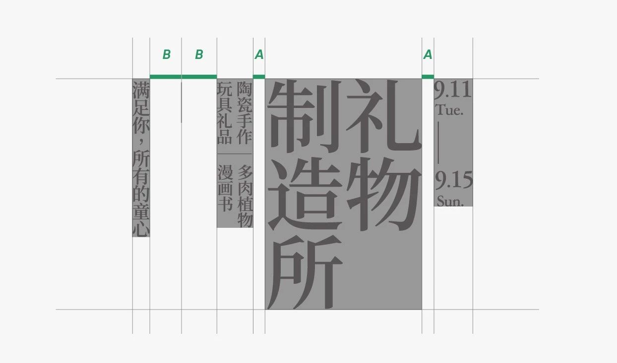 一般來說,豎排之后,我們的閱讀線是從右往左的,所以我一種信息的層次關(guān)系做了從右往左的大小排布。